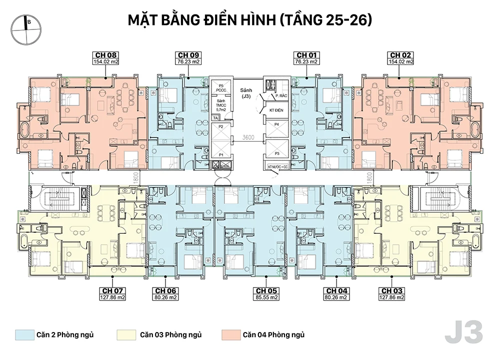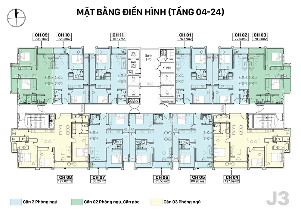 Mặt bằng tầng điển hình tòa J3 tại dự án Jade Square