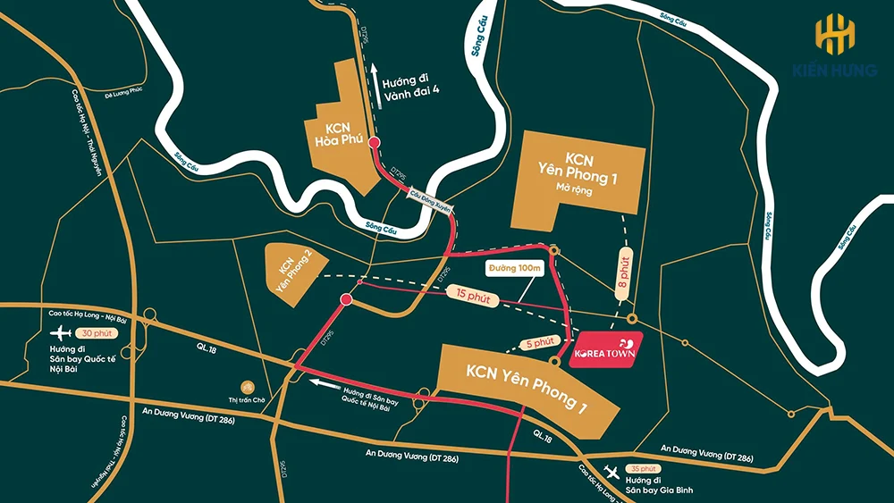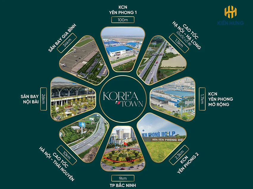 Nằm giữa mạng lưới giao thông chiến lược và 3 khu công nghiệp trọng điểm của Yên Phong, Korea Town sở hữu vị trí bậc nhất khu vực:
