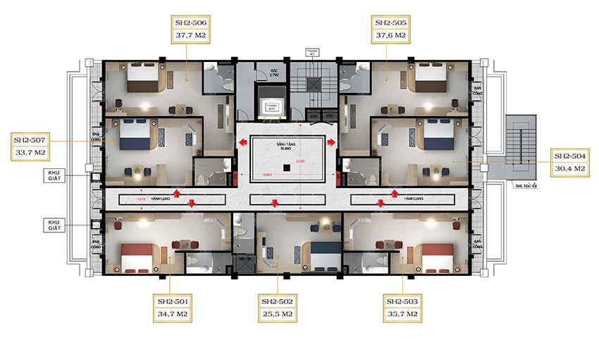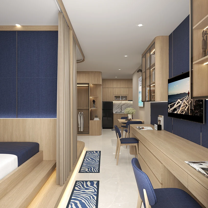 Hình ảnh phối cảnh nội Full nội thất đồng bộ chuẩn 4 sao, khách hàng chỉ cần xách Vali về ở.